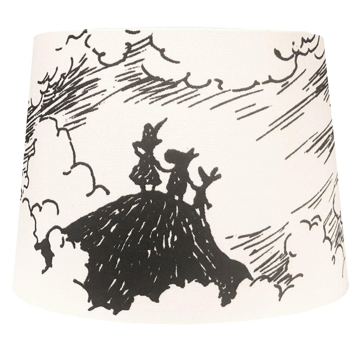 Detta är Sofia Moomin Storm är ett vitt tyg med mönster i svart föreställande det bedårande Mumintrollet och hans vänner.