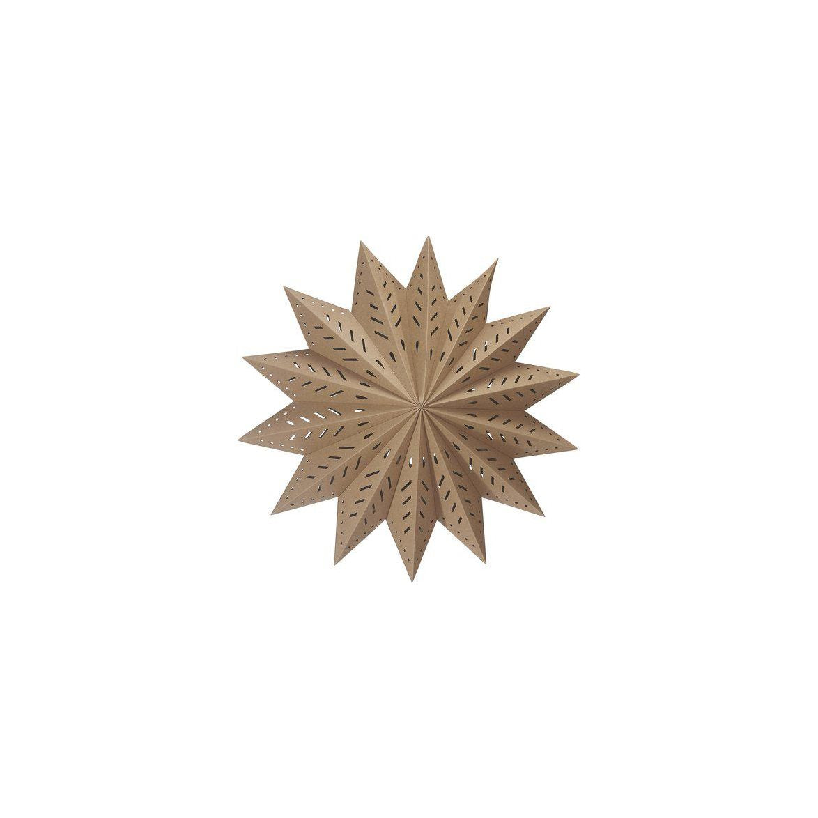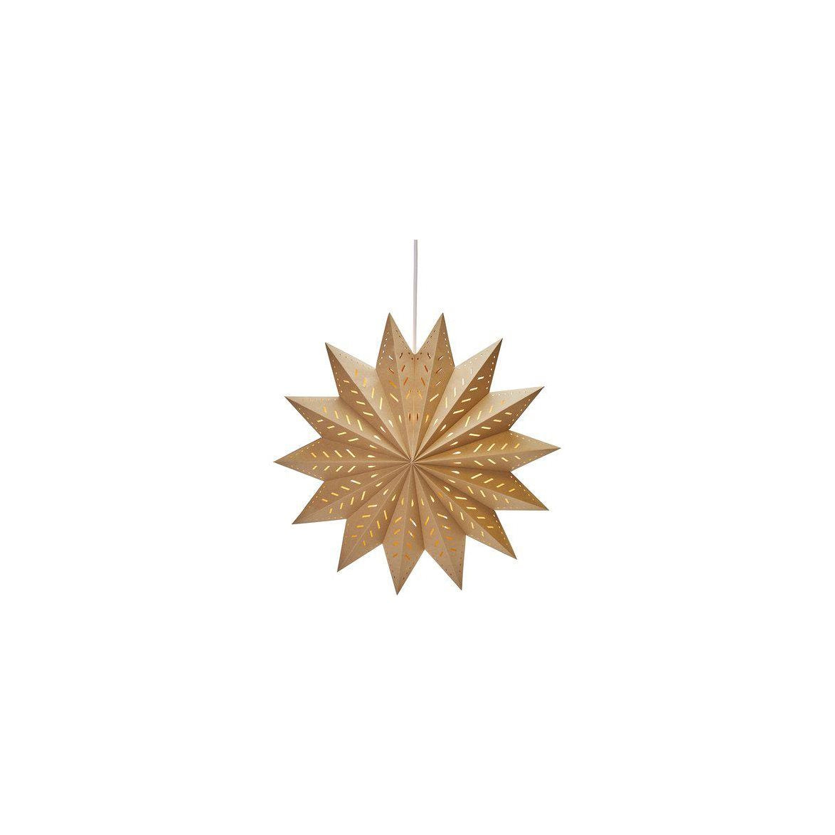 Julstjärnan Alfa i ett brunt kvalitétspapper med dekorativa hål som silar ljuset på ett vackert sätt. Tänk på att köpa till ett sladdställ, svanhals och ljuskälla för en komplett installation.