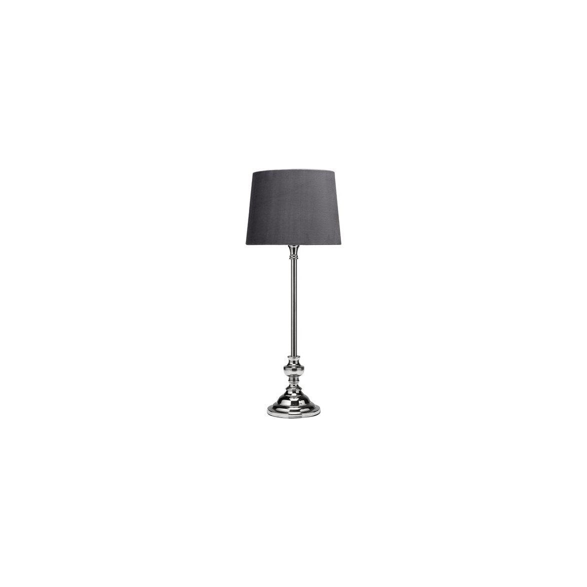 Lampfoten Andrea i krom med lampskärmen Sofia sammet i färgen grå. Lampfoten är 43 cm hög med E27 sockel och har en 1,5 m svart plastsladd med strömbrytare ca 30 cm från lampan. Skärmen är 20 cm bred och 15,5 cm hög..Total höjd blir 55 cm. Kom ihåg att komplettera med en ljuskälla.