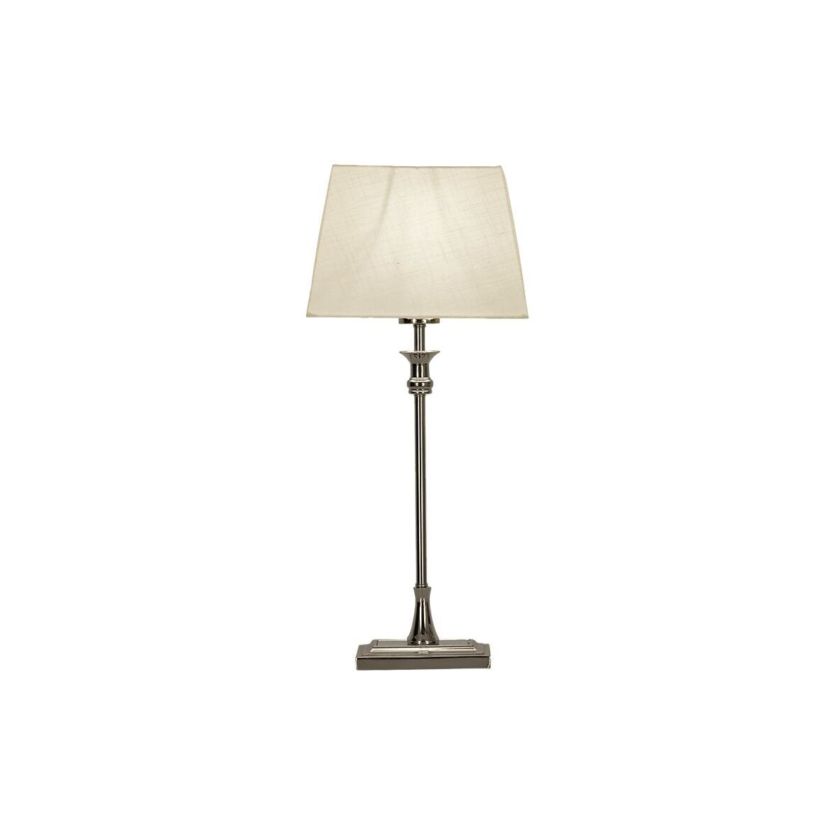 Detta är bordslampan Anette! En lampfot i silverfärg med en rektangulär lampskärm i offwhite. Lampan levereras komplett med lampskärm. Den är 550mm hög, 220mm bred och 140mm djup.