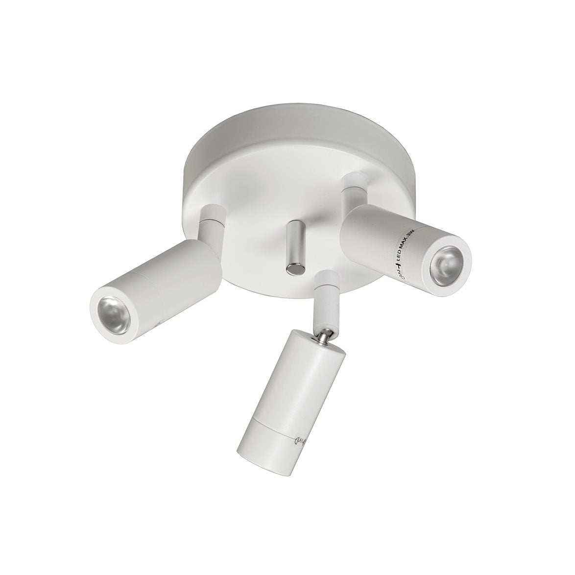 Denna armatur är med en trippel spot på en rund takbricka. Takfästet är anpassat för krokupphäng.