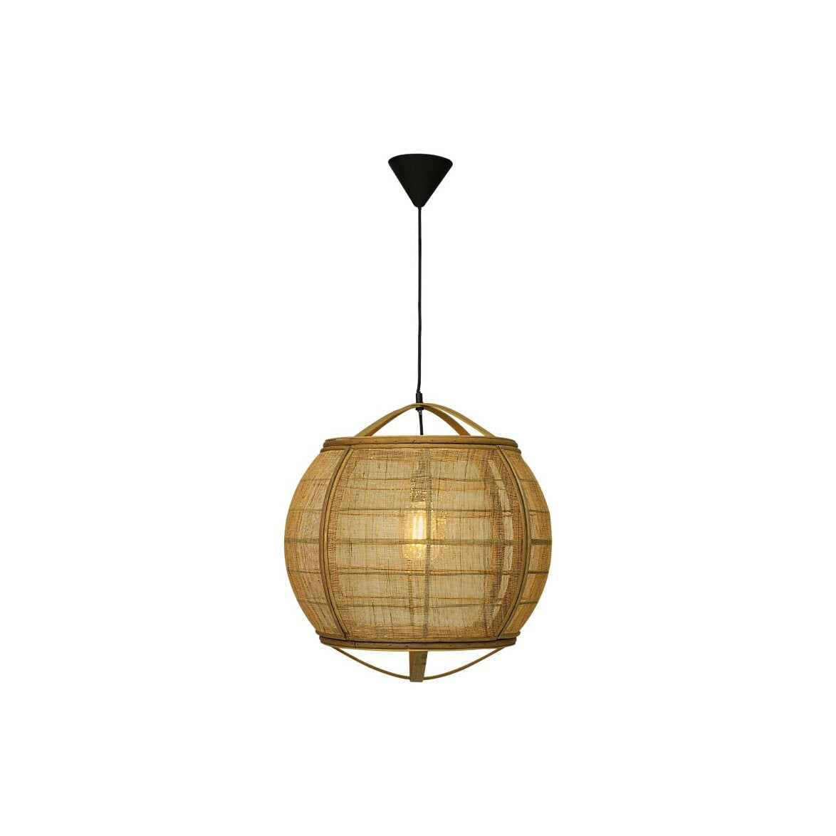 Borneo är en taklampa som är 50cm i diameter med en stomme i trä klädd med ett naturfärgat linnetyg. I den runda formen ska en ljuskälla sitta med E27 sockel.