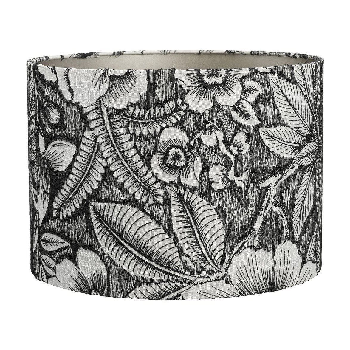 Detta är en cylinderformad skärm i exklusivt vackert broderat tyg. Skärmen har guldfärgad insida med färgmatchad stomme.