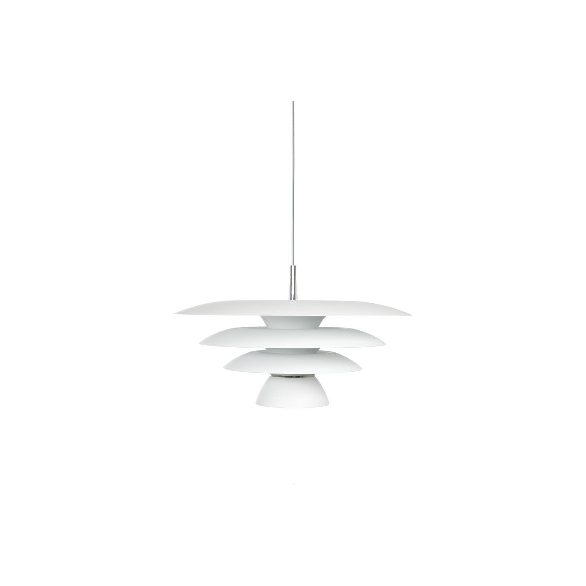 DaVinci Pendel i mattvit är en taklampa ifrån Belid som med mycket vackra detaljer i form av vingar som sprider ett behagligt ljus utan risk för att blända. Designen passar sig lika bra över köksbordet som ovanför soffbordet. 2,8 meter vit textilsladd. Kom ihåg att komplettera med lamppropp och ljuskälla för sockel E14.