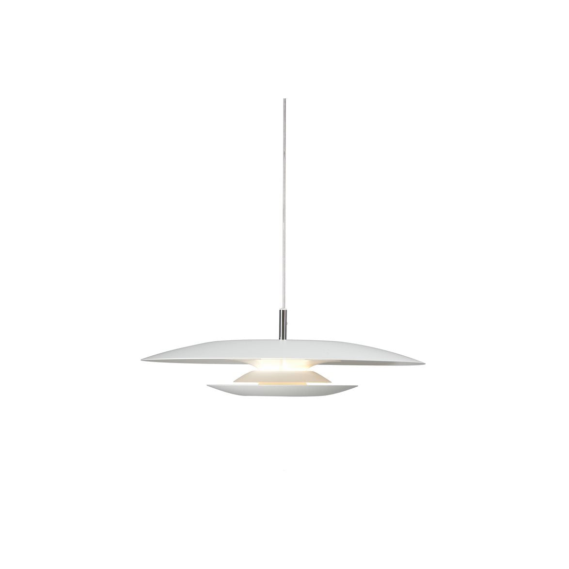 Eclipse är en stilren pendel från svenska Belid. Den är mattvit och 430mm i diameter och ska bestyckas med en G9 sockel. Sladden är transparent och med en vit takkopp. Höjden på lampan är bara 85mm!