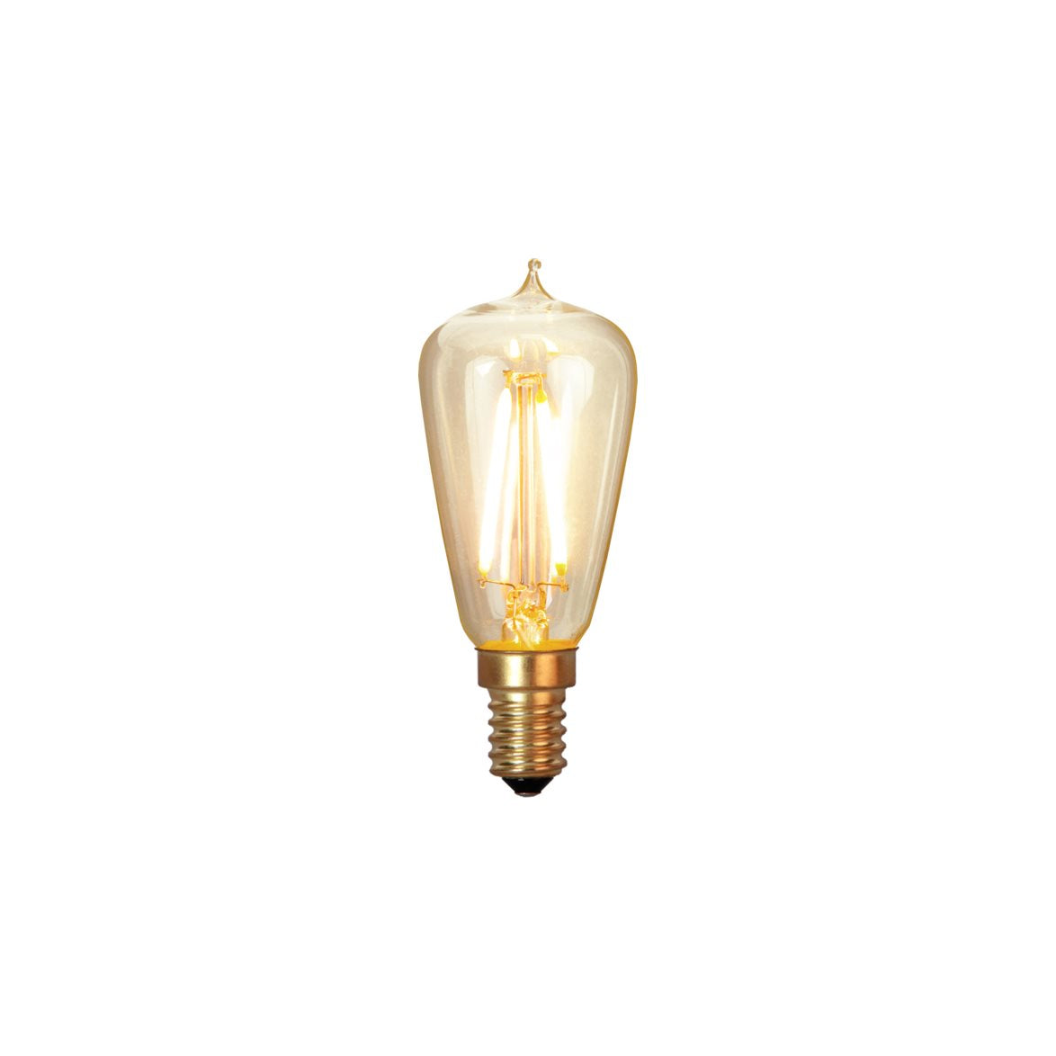 Detta är en LED-Edisonlampa från Star trading. Sockeln är E14 och den ger 120lm vilket motsvarar en gammeldags 15W glödlampa. Höljet är klart och den har en färgtemperatur på 2200K vilket är mycket varmvitt.