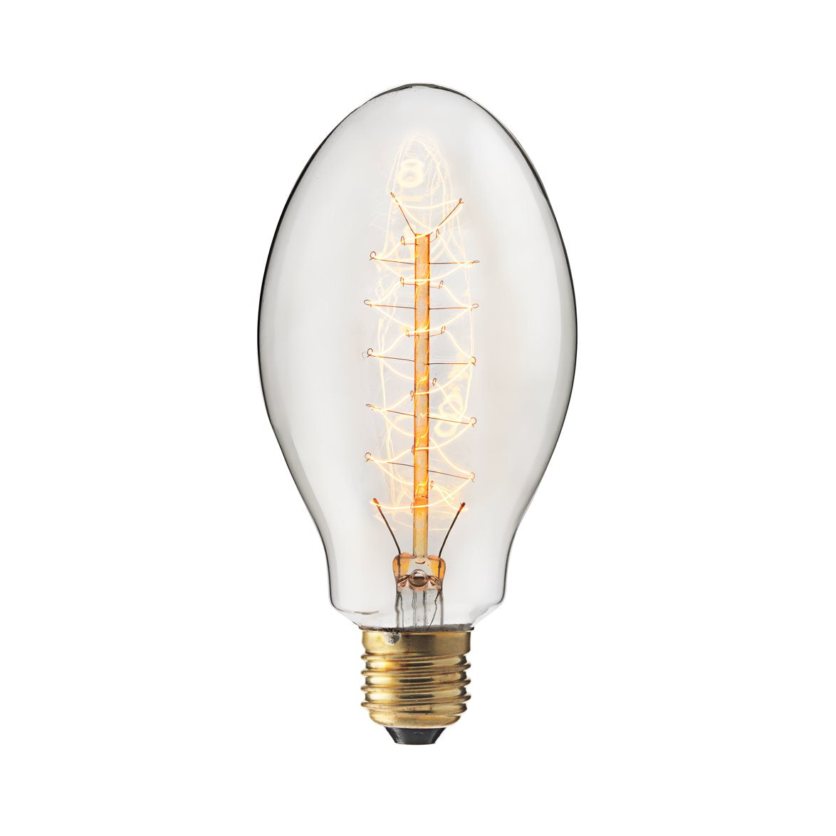 Elipsiod är en gammeldags glödlampa på 40W och E27 sockel. 160 lumen. 160mm hög och 75mm i diameter. Dimbar.