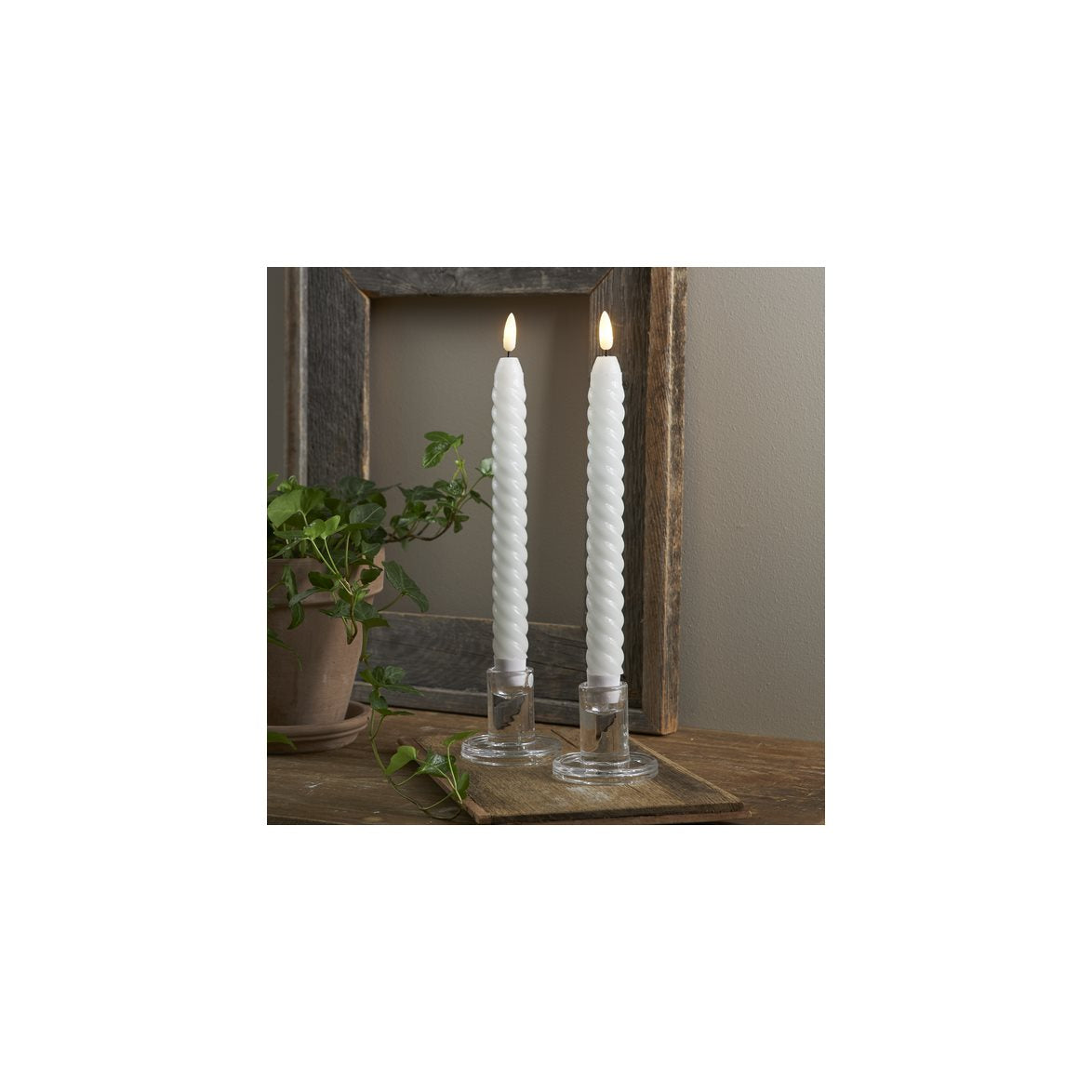 Flamme Swirl är normallånga ljus med mycket naturtrogen låga som lyser med varmvitt sken. Det vaxade ljuset är trendigt tvinnat i sin design. De har en inbyggd timer 6tim på/18tim av som gör det enkelt att bestämma när de ska lysa. Levereras i 2-pack.