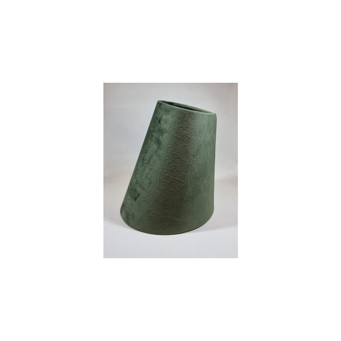 Futura är en toppringsskärm från Aneta i sammet. Underkanten är snedskuren på typiskt femtiotalsvis. Mått: 200mm i diameter nertill, 230mm hög och 100mm i diameter upptill.