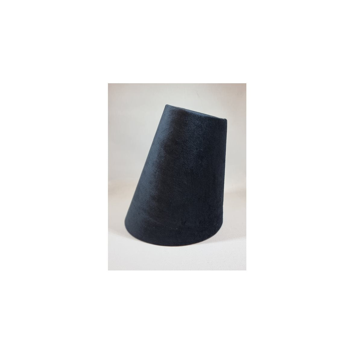 Futura är en toppringsskärm från Aneta i sammet. Underkanten är snedskuren på typiskt femtiotalsvis. Mått: 200mm i diameter nertill, 230mm hög och 100mm i diameter upptill.