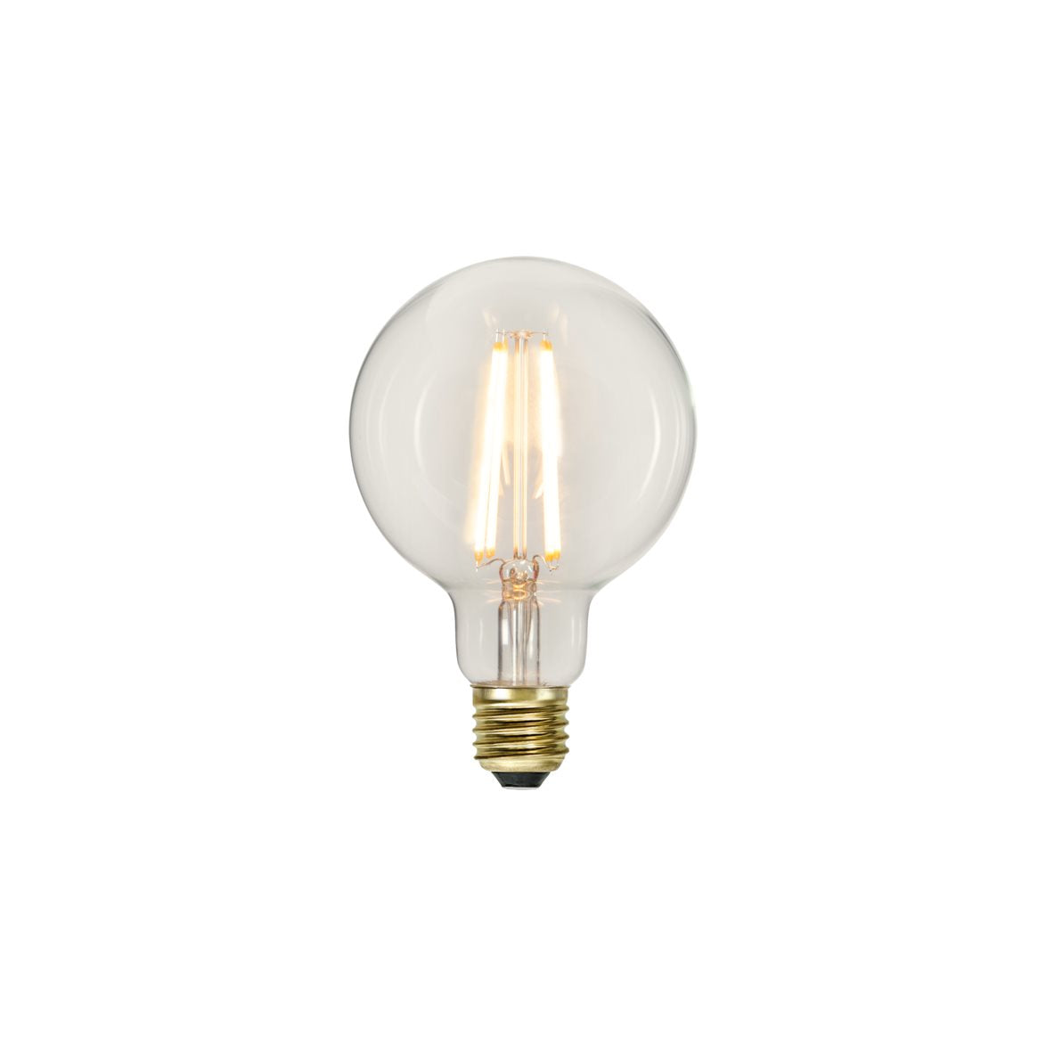 Detta är en LED-Globlampa från Star trading med så kallad 3-stegsdimmer som är 95mm i diameter. Sockeln är E27 och den ger 700-350-70lm som du ställer med en vanlig strömbrytare. Höljet är klart och den har en färgtemperatur på 2100K vilket är mycket varmvitt.