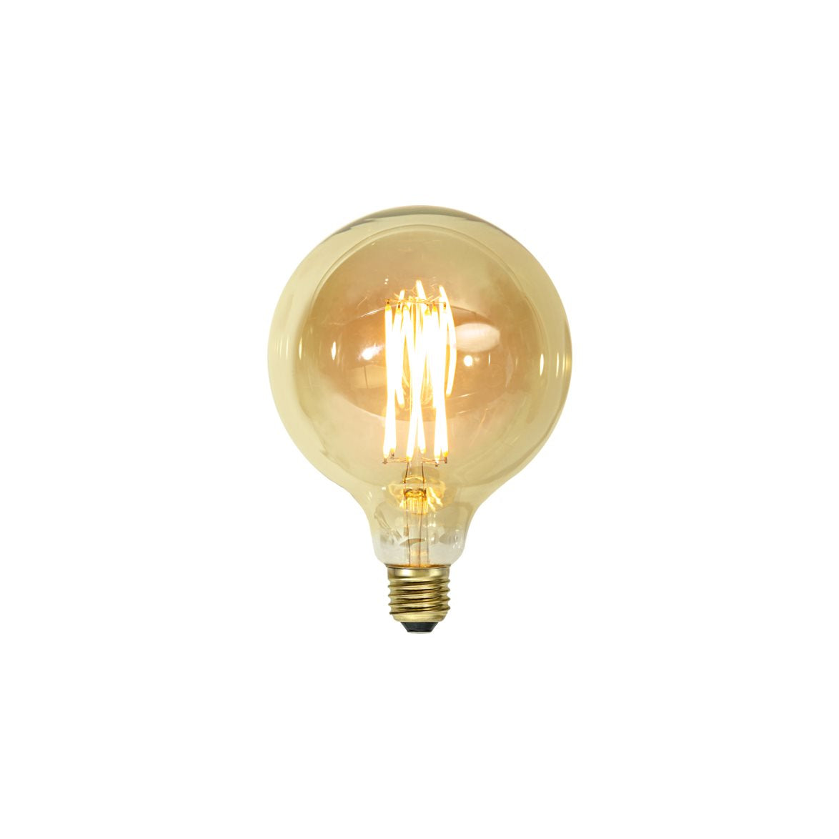 Detta är en LED-Globlampa från Star trading som är 125mm i diameter. Sockeln är E27 och den ger 240lm vilket motsvarar en gammeldags 25W glödlampa. Höljet är amberfärgat och den har en färgtemperatur på 1800K vilket ger ett mycket varmt, mjukt och behagligt sken.