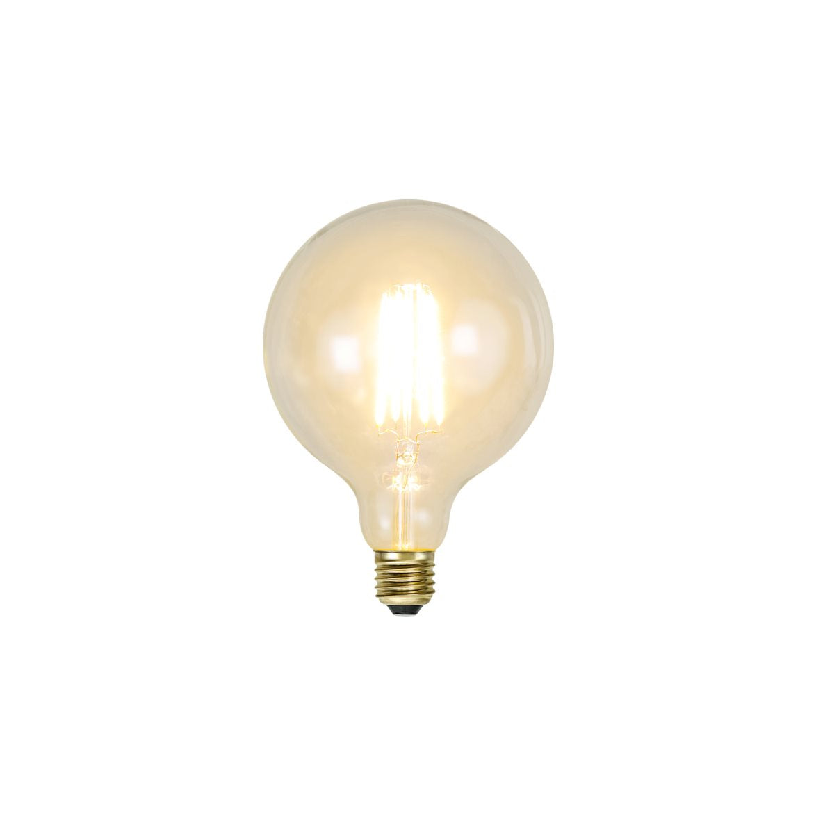 Detta är en LED-Globlampa från Star trading som är 125mm i diameter. Sockeln är E27 och den ger 320lm vilket motsvarar en gammeldags 30W glödlampa. Höljet är klart och den har en färgtemperatur på 2100K vilket är mycket varmvitt.