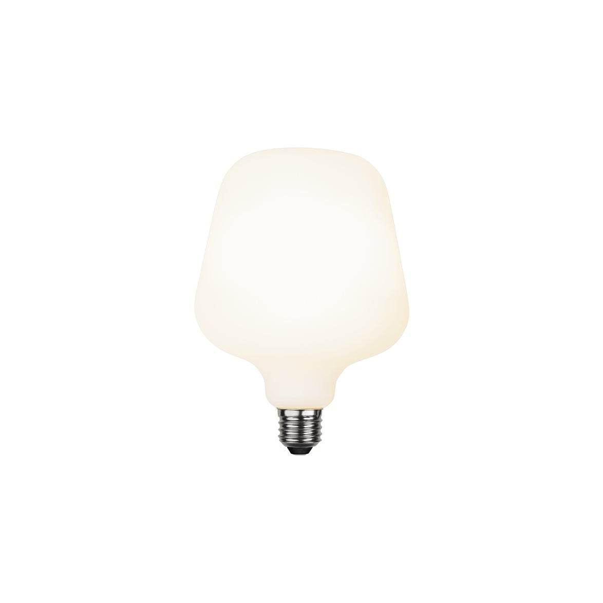 Detta är en LED-Globlampa från Star trading i vacker funkisform. Sockeln är E27 och den ger 420lm vilket motsvarar en gammeldags 40W glödlampa. Diametern på globen är 125mm och är opalvit. Den har en färgtemperatur på 2600K vilket är varmvitt.