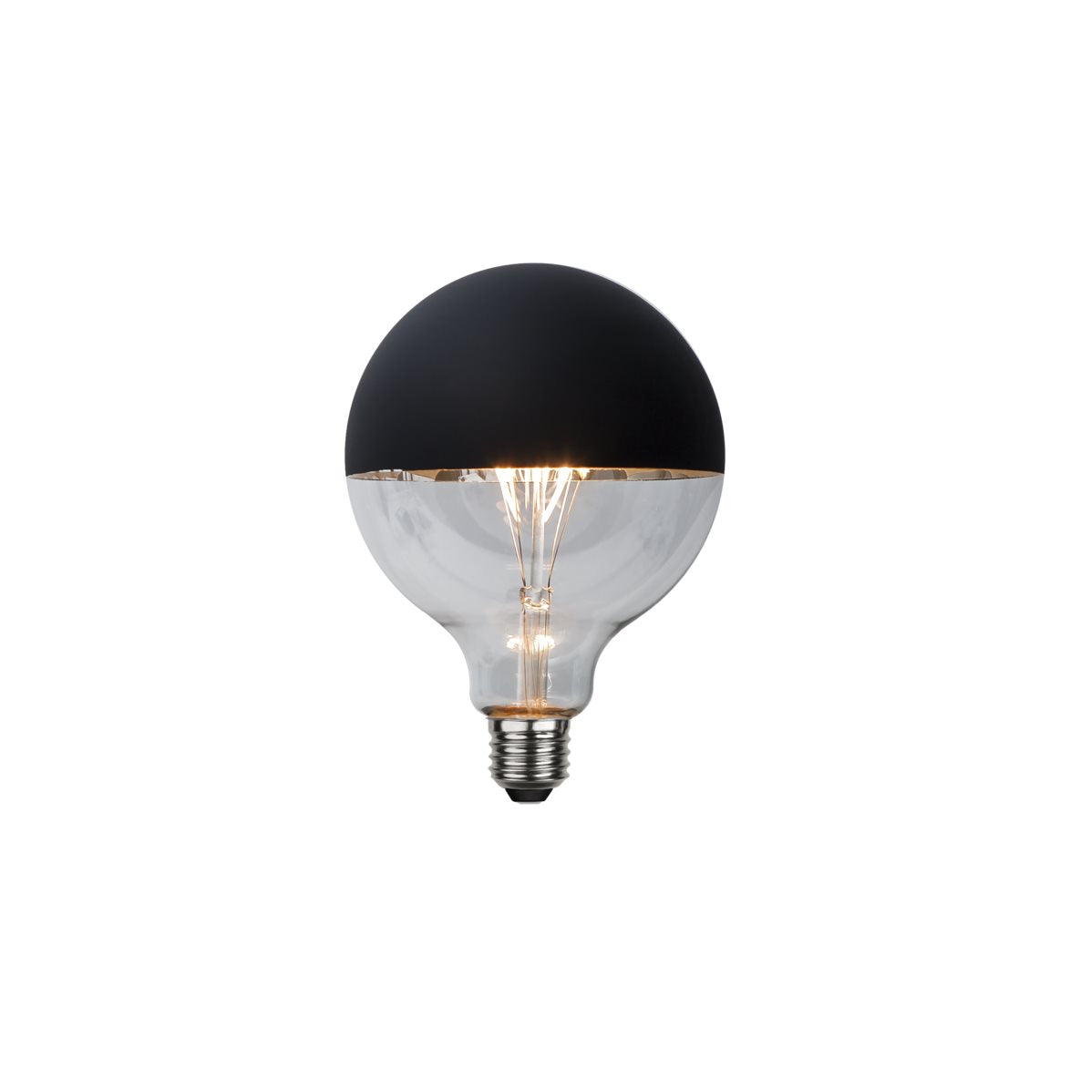 Det här är en spotlight i globvariant ljuskälla från Star Trading med modern LED-teknik. Den har lång hållbarhet och är energisnål. Toppförspeglad och det innebär att ljuset går bakåt och risken att bländas blir mindre. Svart färg på toppen.