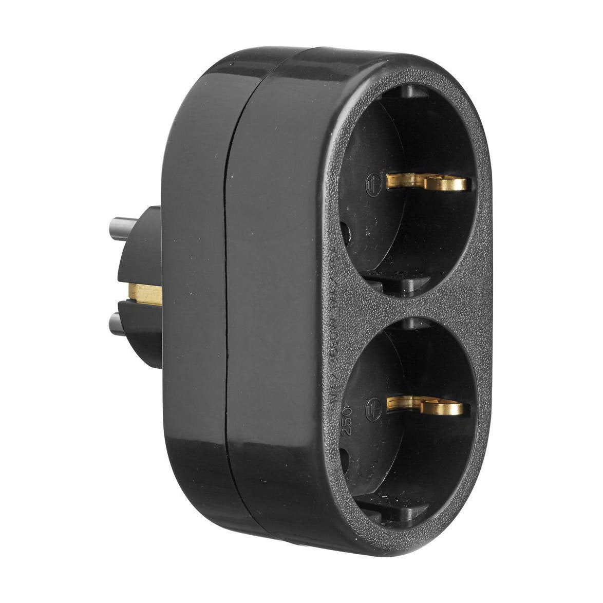 Grenpropp eller grenuttag 2-vägs. Med jord och petskyddad. 16A/250V. I svart färg. För torra utrymmen.