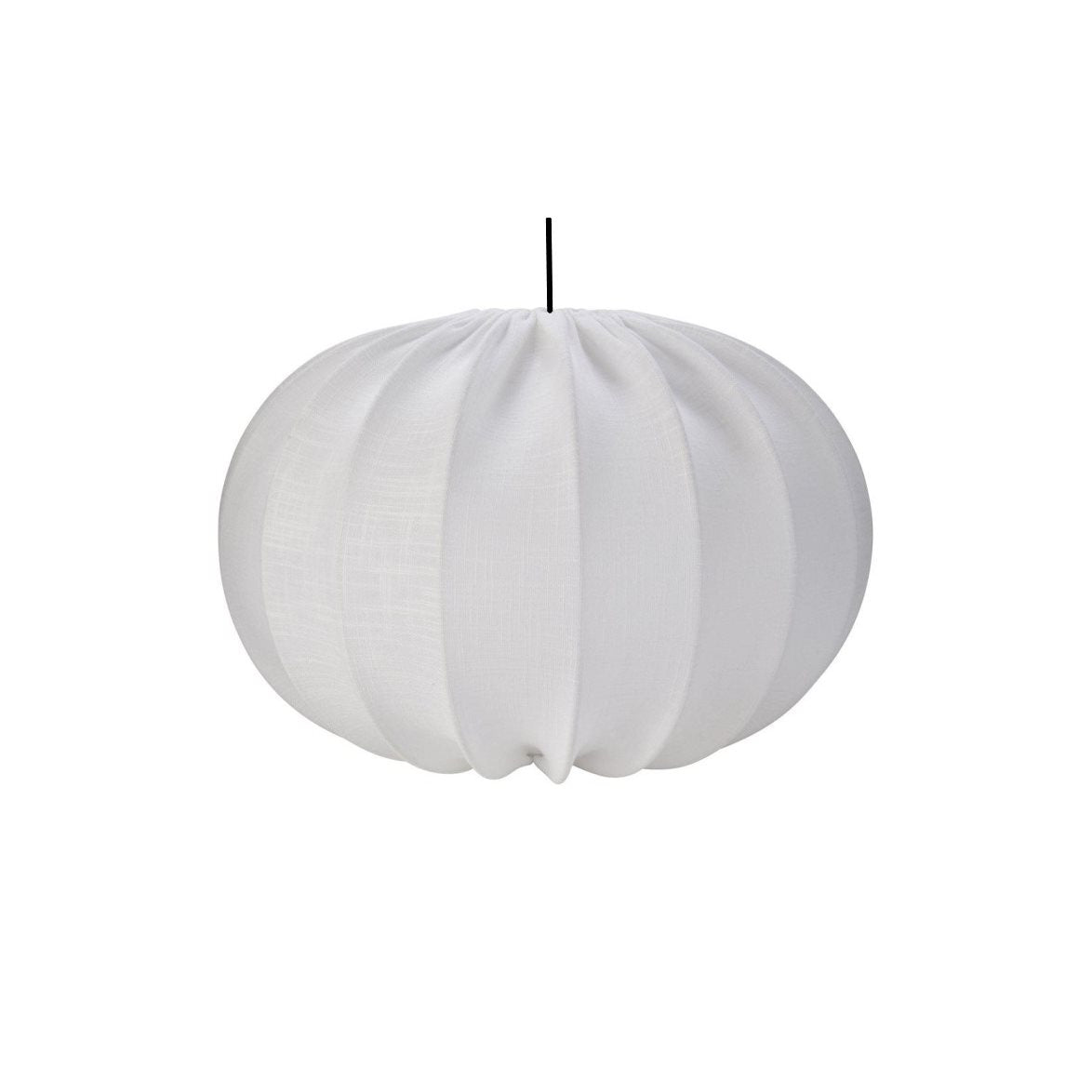 Hilma är en vacker och stilren taklampa i naturfärgat linnetyg i offwhite. Formen är elipsformad och det vita eller svarta upphänget med lamphållare och takkopp för krok ska bestyckas med en ljuskälla med E27 sockel.