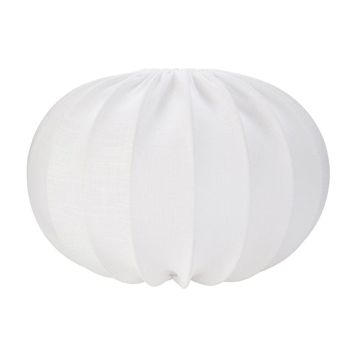 Hilma är en vacker och stilren taklampa i vitt bomullstyg som heter Franza. Formen är elipsformad och det vita upphänget med lamphållare och takkopp för krok ska bestyckas med en ljuskälla med E27 sockel.