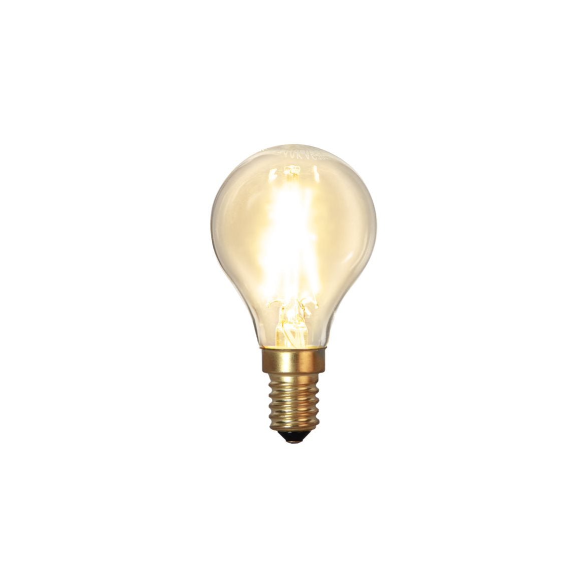 Detta är en LED-klotlampa från Star Trading. Sockeln är E14 och den ger 120 lumen vilket motsvarar en gammeldags 15W glödlampa. Höljet är klart och den har en färgtemperatur på 2100 kelvin vilket är ett varmt mjukt sken.