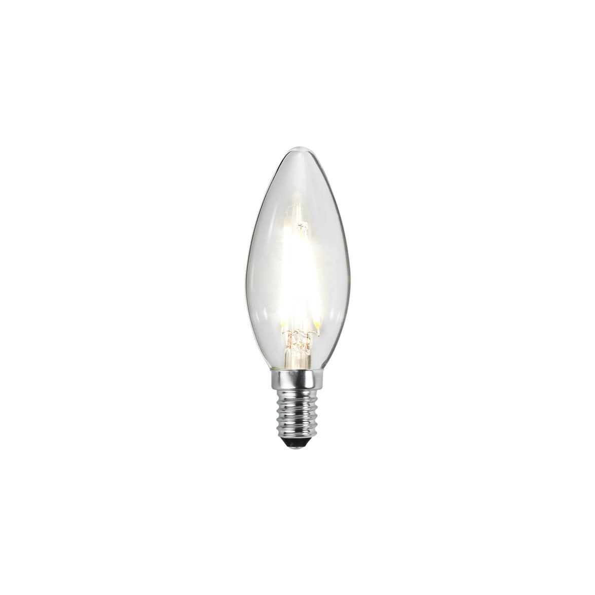 Detta är en LED-Kronljus från Star trading. Sockeln är E14 och den ger 270lm vilket motsvarar en gammeldags 26W glödlampa. Höljet är klart och den har en färgtemperatur på 4000K vilket är kallvitt.