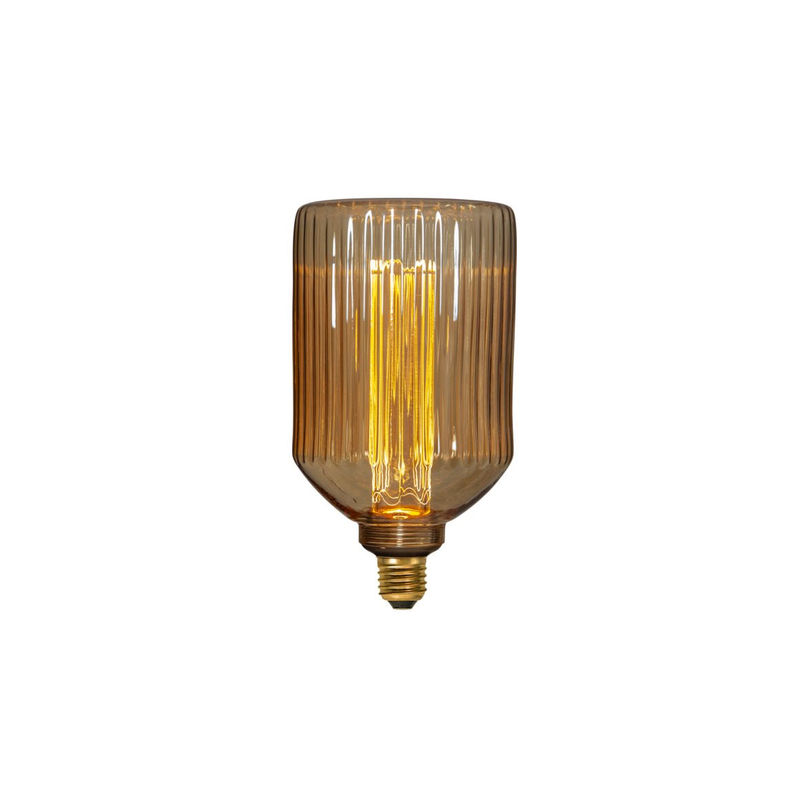 LED lampa med E27 sockel i serien New Generation Classic. En spännande form och amberfärgat glas. Endast 50 lumen och 1800 kelvin ger ett varmt och mysigt sken som lämpar sig väl för dekoration.