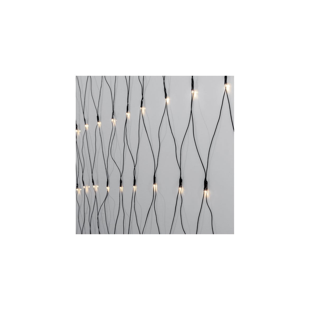 Detta är ett ljusnät som är 3x3 meter med svart sladd och LED-lampor som har en kall isig ton. Nätet kan användas både inomhus och utomhus.