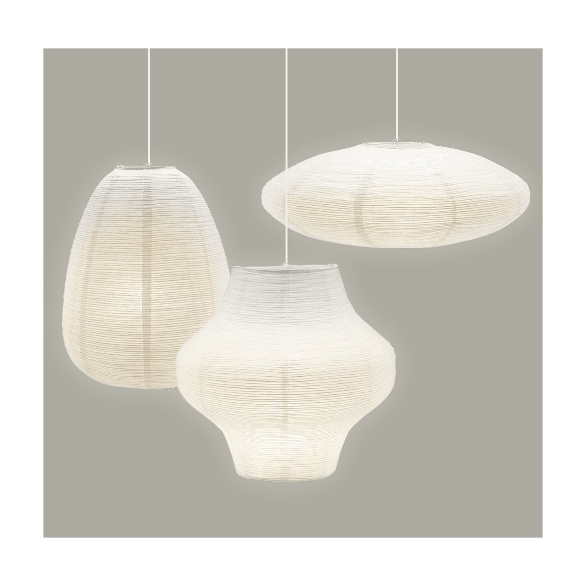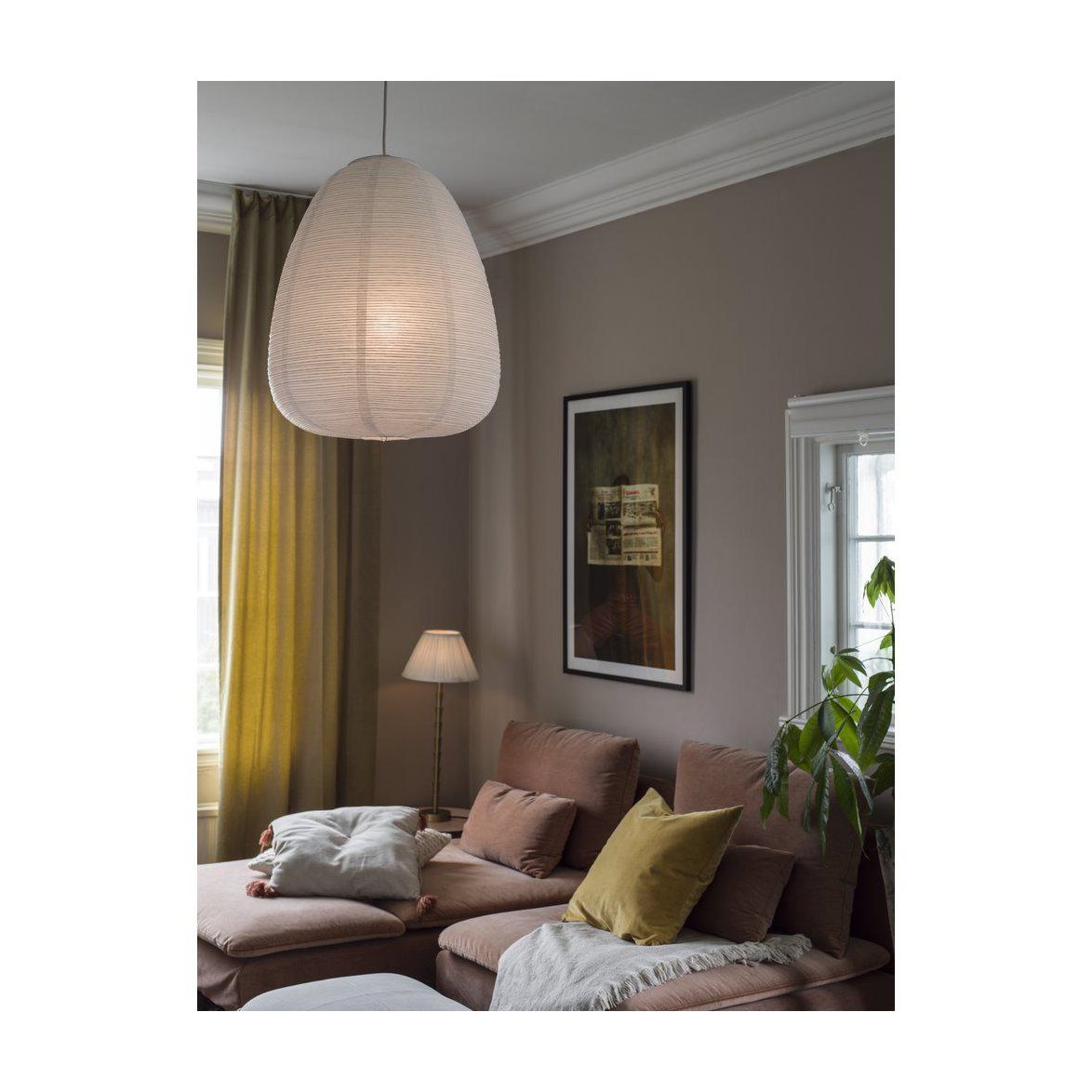 Detta är en lampskärm i rispapper som du enkelt hänger upp i ett sladdställ med ett metallklipps som sitter i stommen.