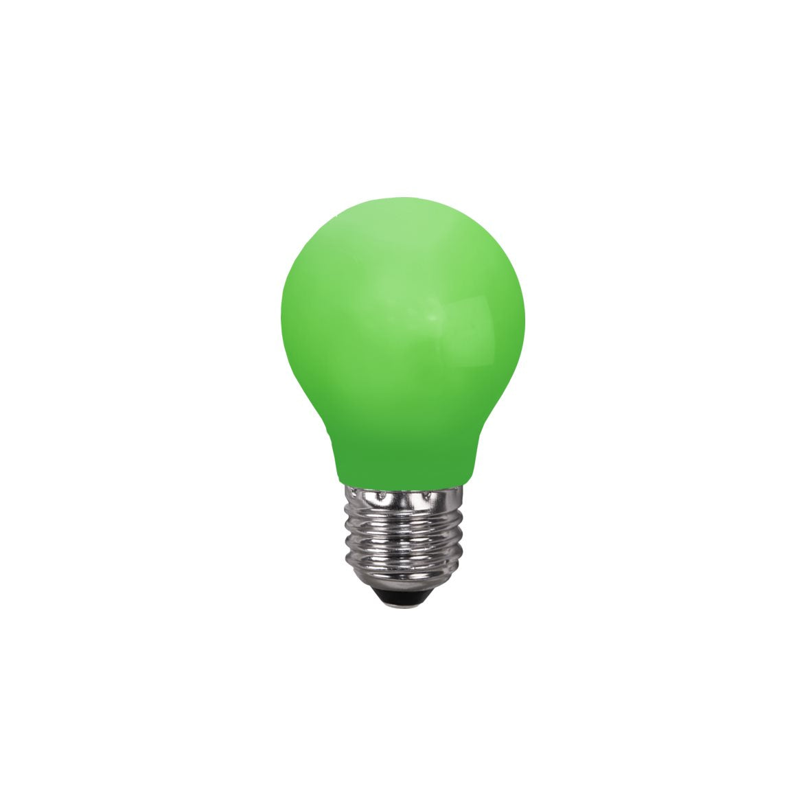 Normallampa i grön färg med E27 sockel. 220-240V. Endast 1W . Passar alldeles utmärkt i ljusslinga för utomhusbruk. Höjd 93mm och diameter 55mm.