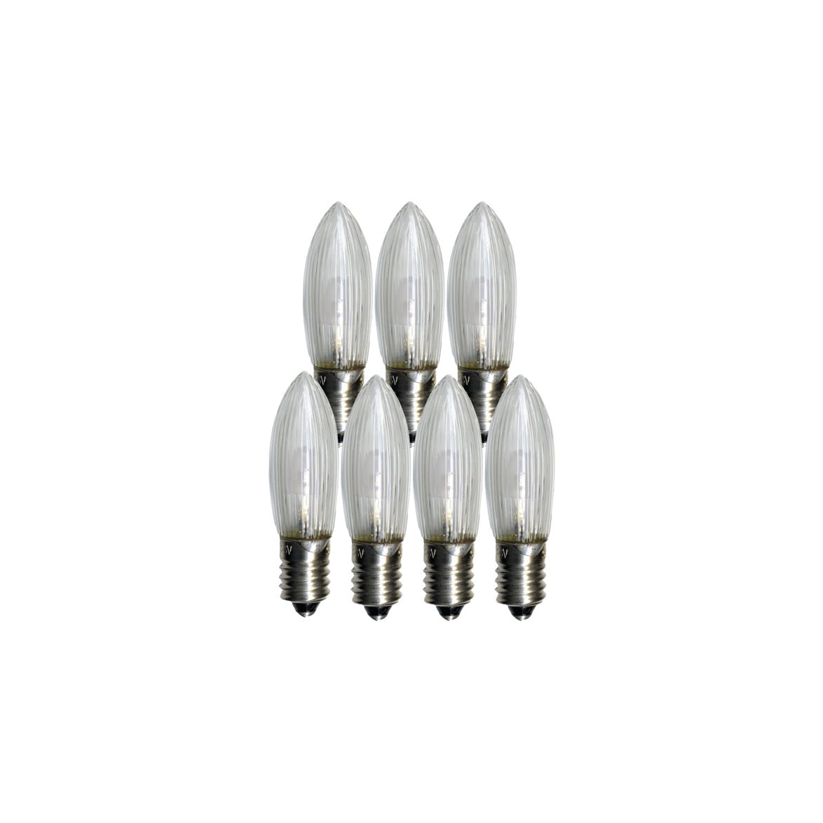 Detta är en reservlampa toppljuslampa LED som passar till ljusstakar och julgransslingor med lampantal mellan 4-25 st och även transformator. 10-55V Sockeln är E10 och glaset är klart-randigt. Obs 5 lumen.