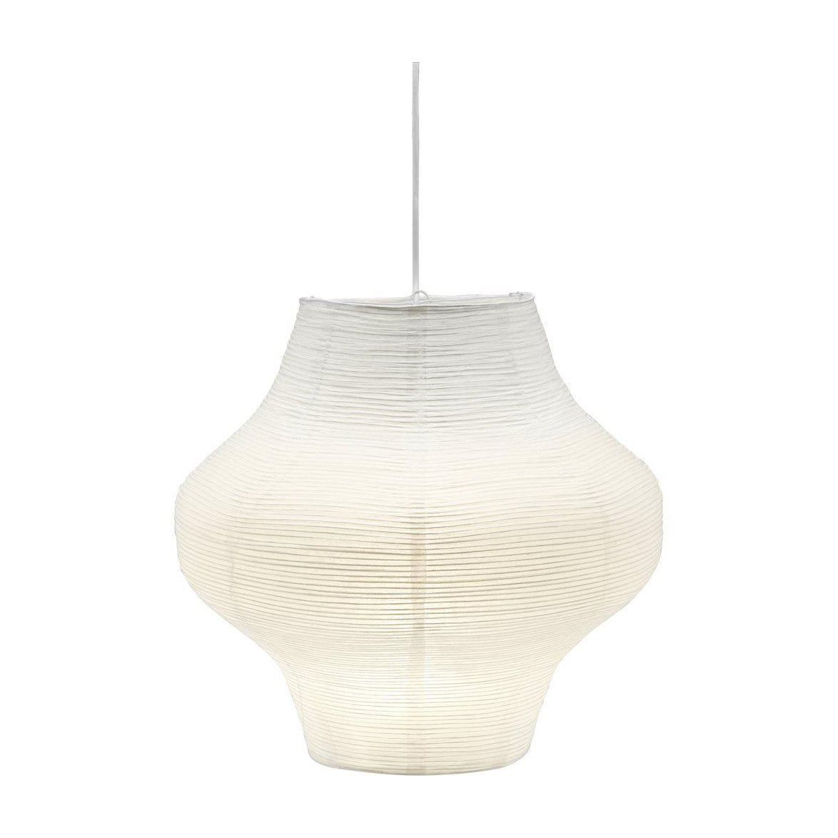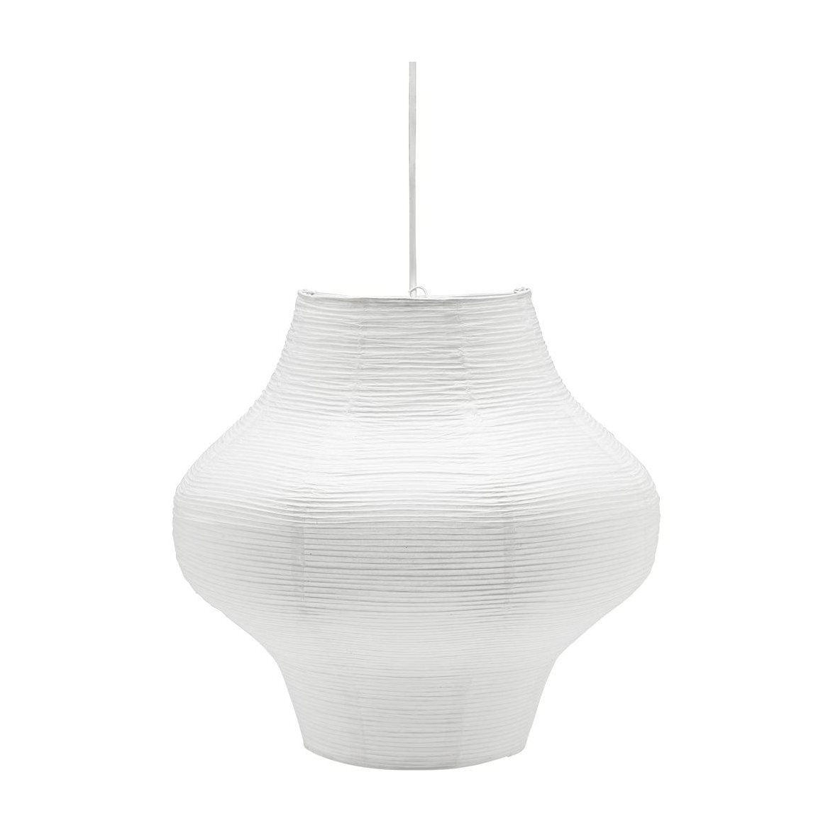 Detta är en lampskärm i rispapper som du enkelt hänger upp i ett sladdställ med ett metallklipps som sitter i stommen.