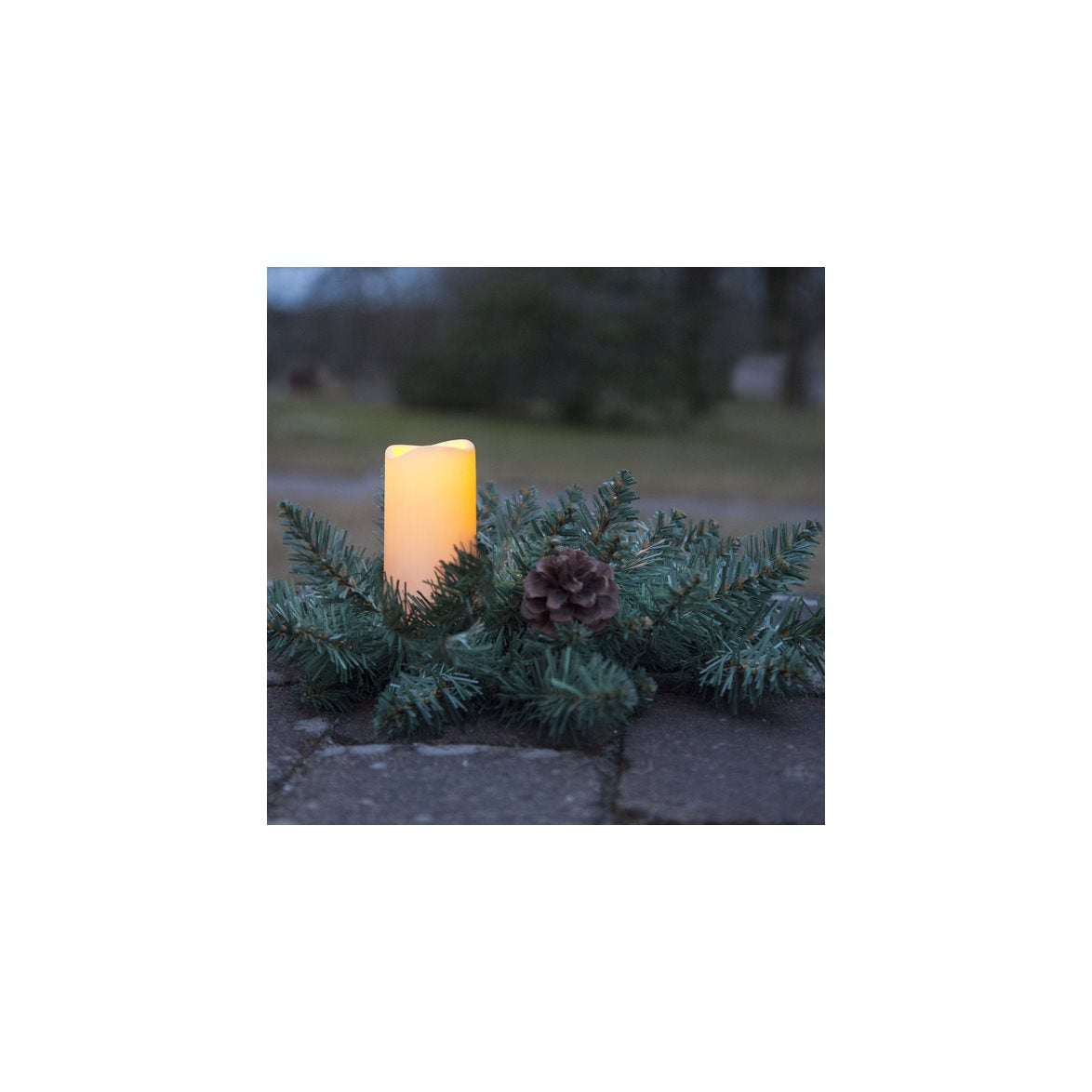 Serene är en vacker dekoration med konstgjort granris och batteriljus som både har en 6h timer och sensor. Ljuset ska bestyckas med 2st AA-batterier. Dessa medföljer inte.