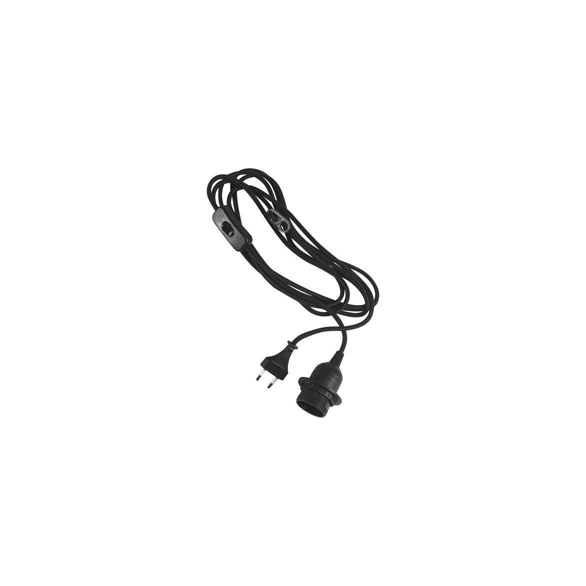 Svart sladdställ med 3,5 meter lång textilsladd med strömbrytare och väggkontakt. E27 lamhållare med ringfäste.