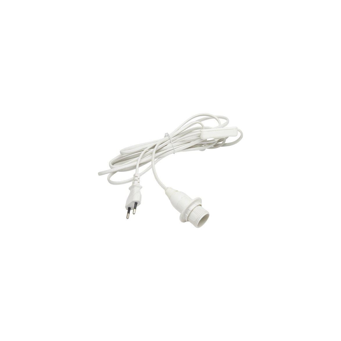 Vitt sladdställ med 4 meter lång sladd med strömbrytare ca 1,5 meter från väggkontakten. E14 lamhållare med ringfäste.