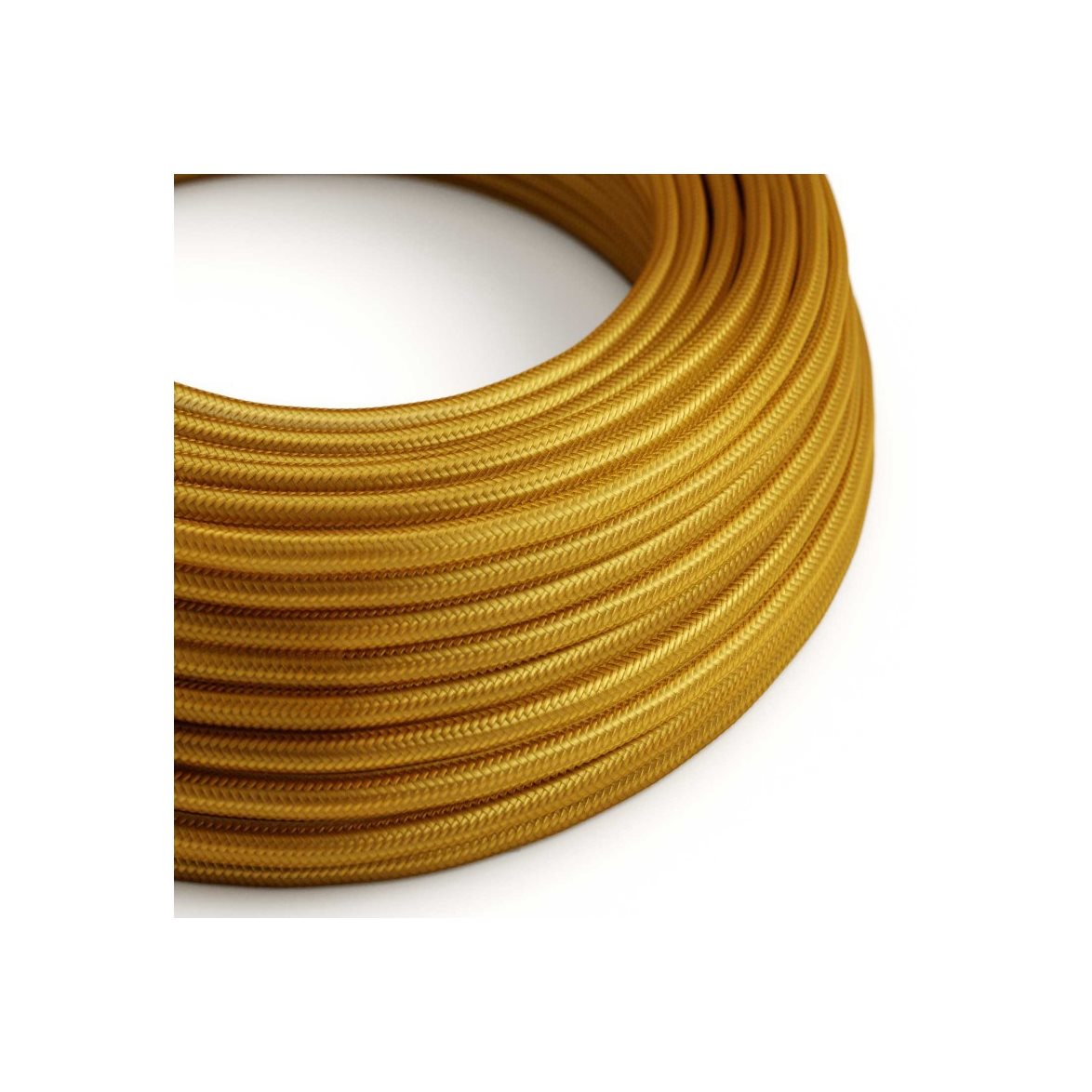 Detta är textilsladd med blank viskos. Dimentionen är 3x0,75 och den är guldfärgad. Säljs på metervara.