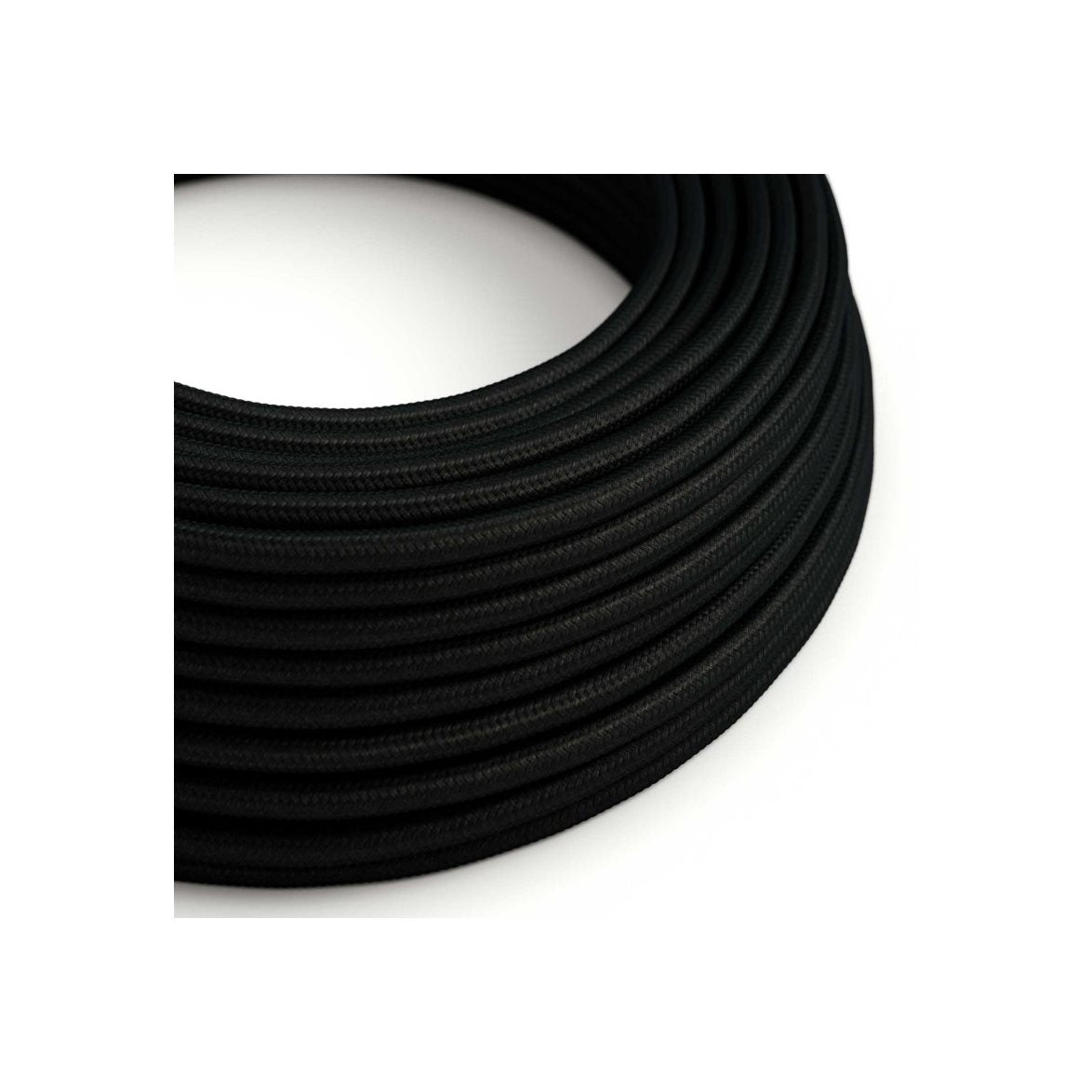 Detta är textilsladd med blank viskos. Dimentionen är 3x0,75 och den är svart. Säljs på metervara.