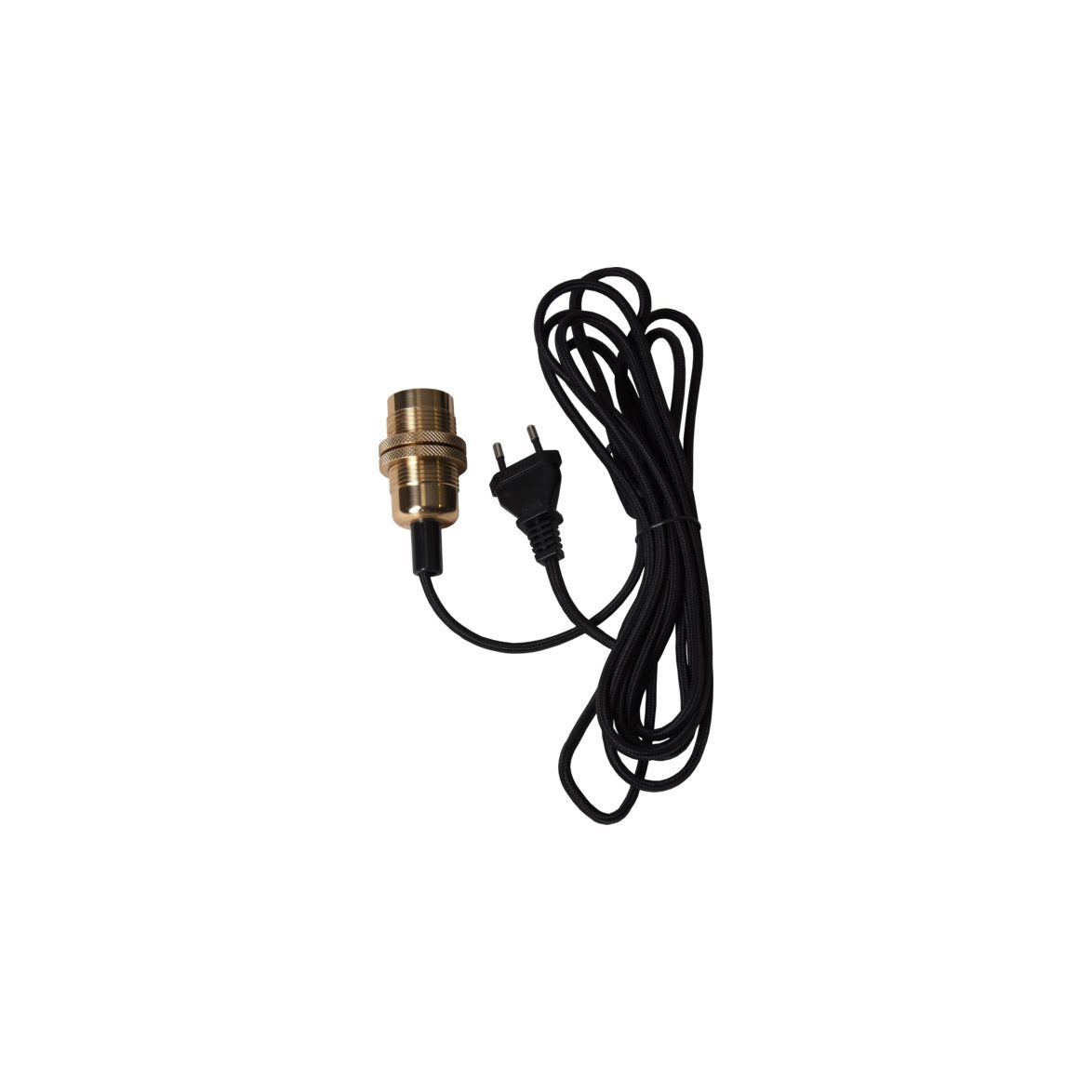Lampupphänge med E14 sockel . Lamphållaren i mässing med uranpåliggande gänga och skärmring. Svart kabel 4meter med europapropp. och användningsområde: inomhus.