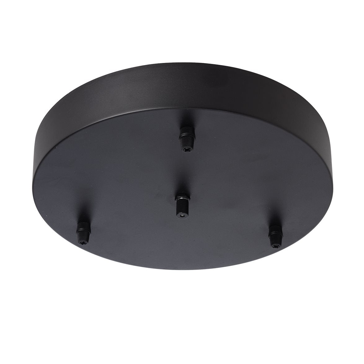 Detta är ett takupphäng för tre lampor. Själva plattan är för takkrok. Den runda plattan finns antingen vit eller svart.